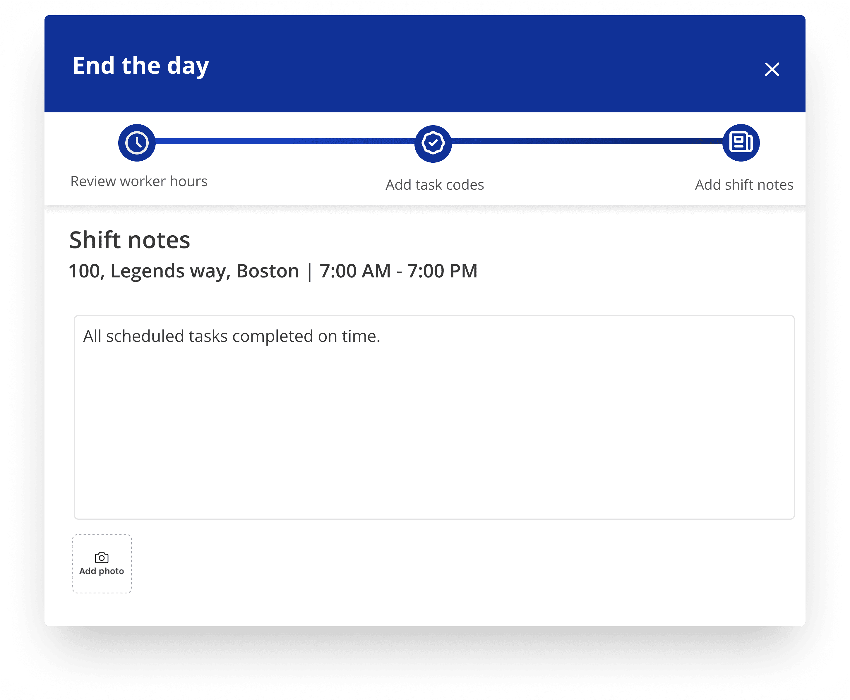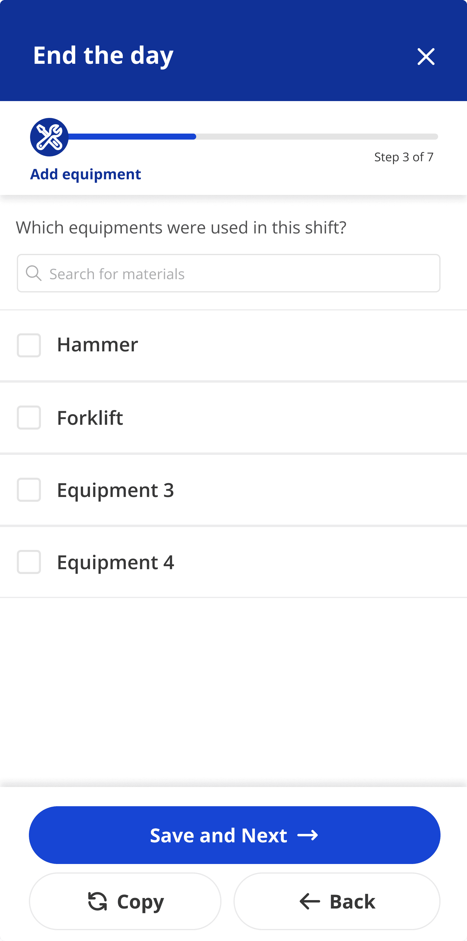 Foremen can record materials consumed and equipment deployed throughout the shift.