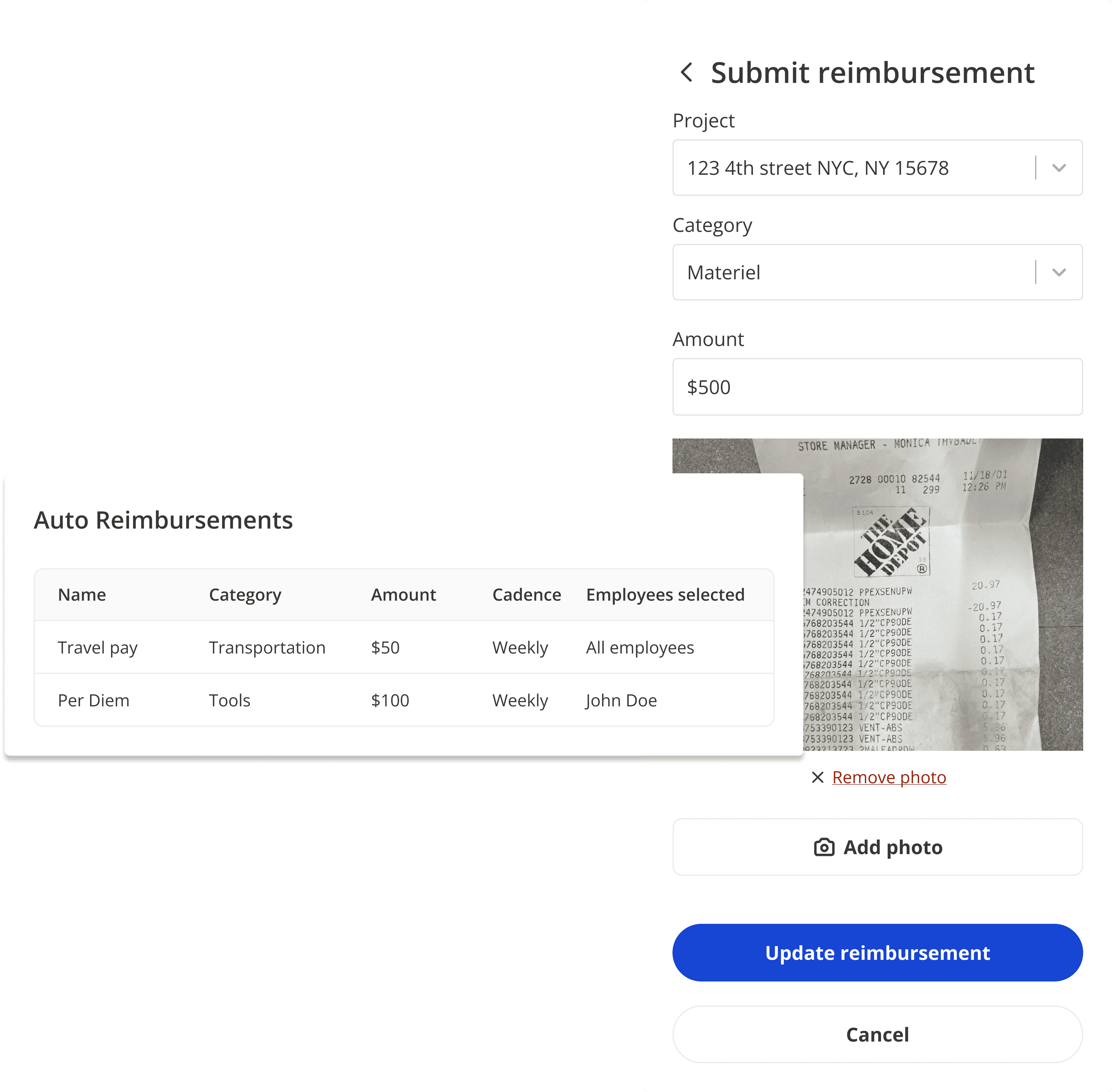 Approved reimbursements flow directly into payroll so payments are processed accurately.