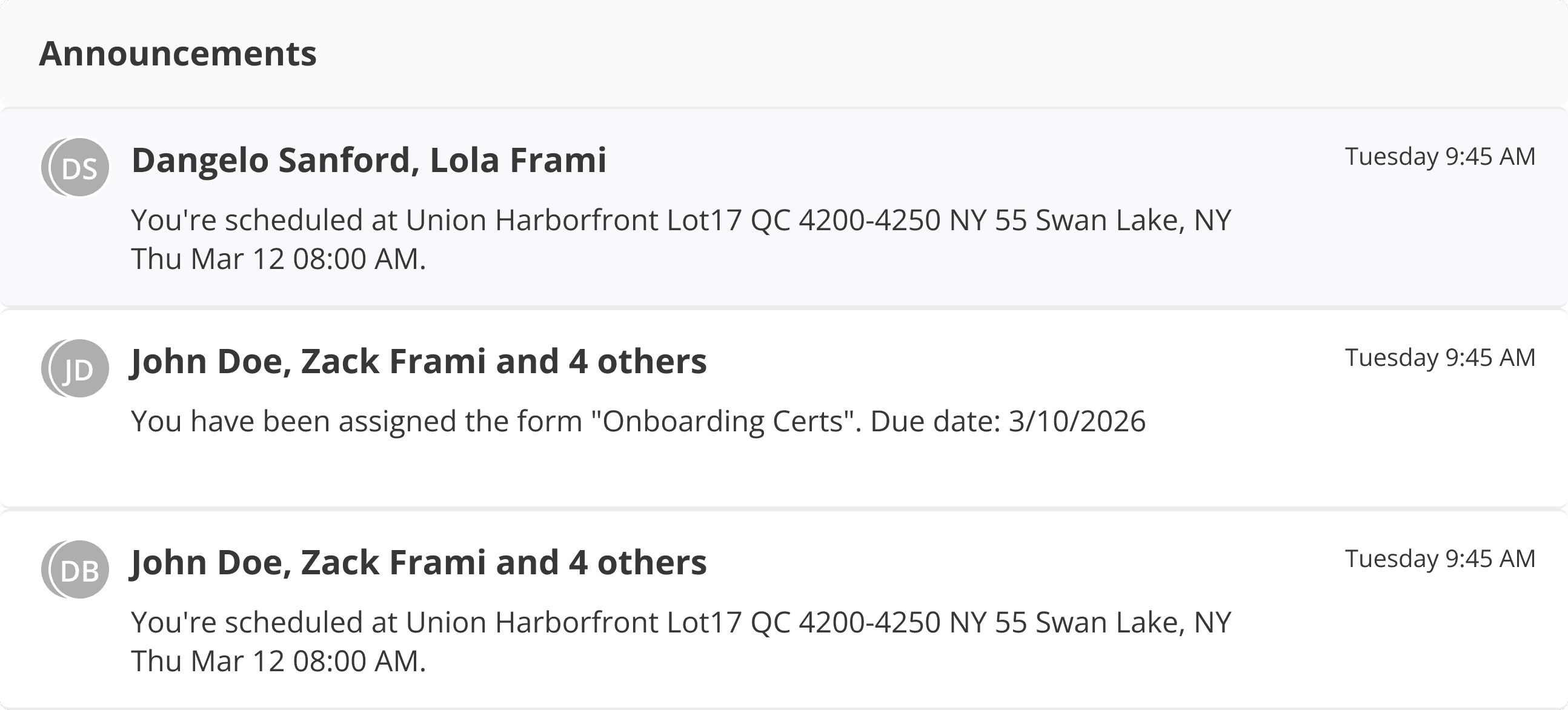 Write messages and schedule delivery so crews receive updates exactly when needed, whether it’s tomorrow’s schedule or a holiday reminder.