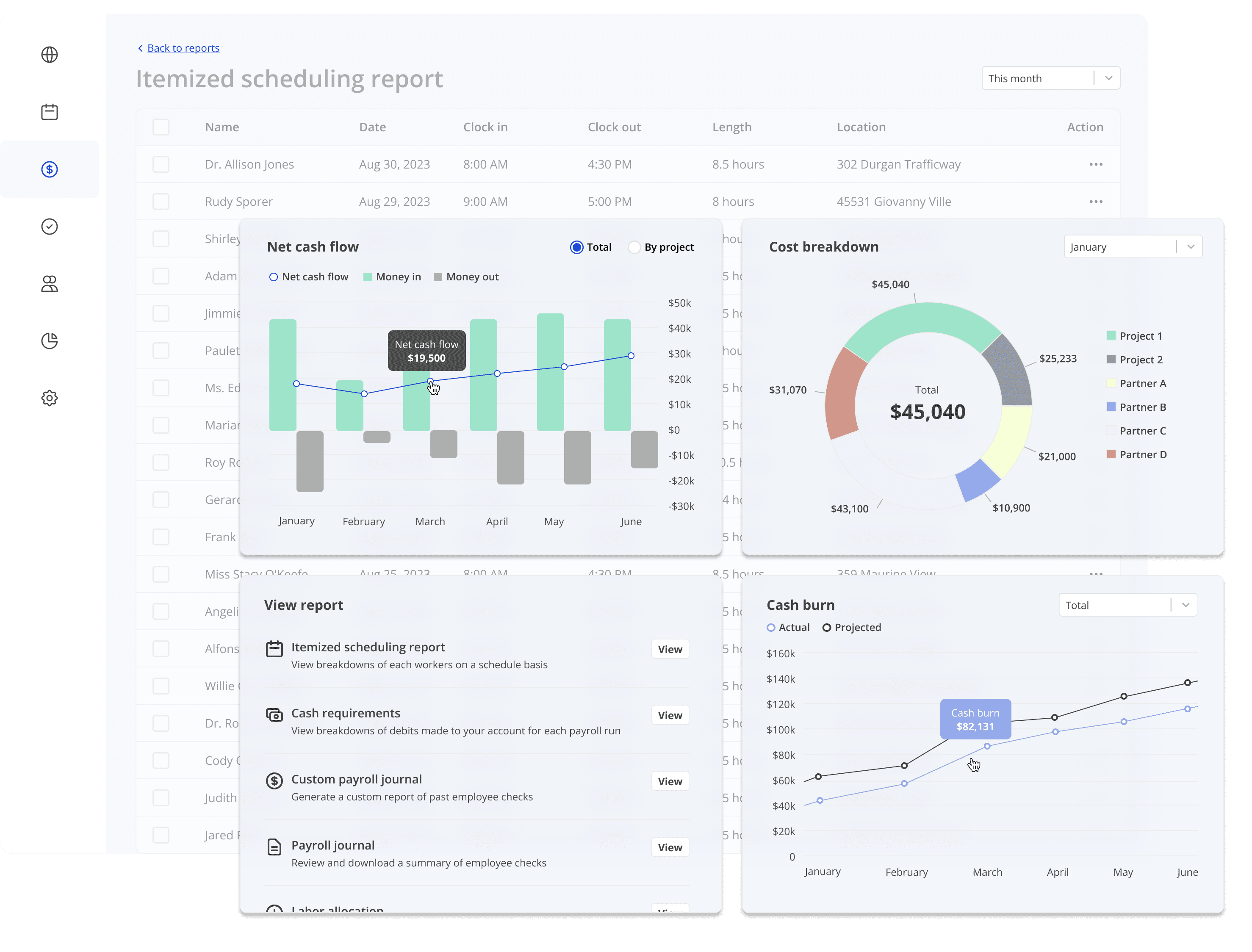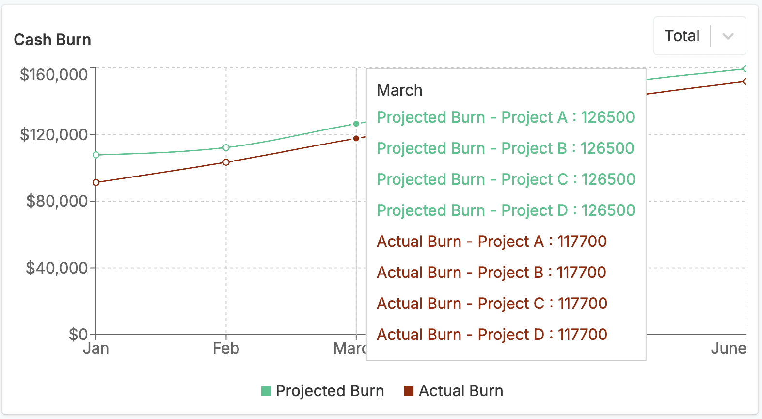 View cash burn by project to understand labor costs. Plus up or pull back on labor allocation based on how teams are burning against projections.