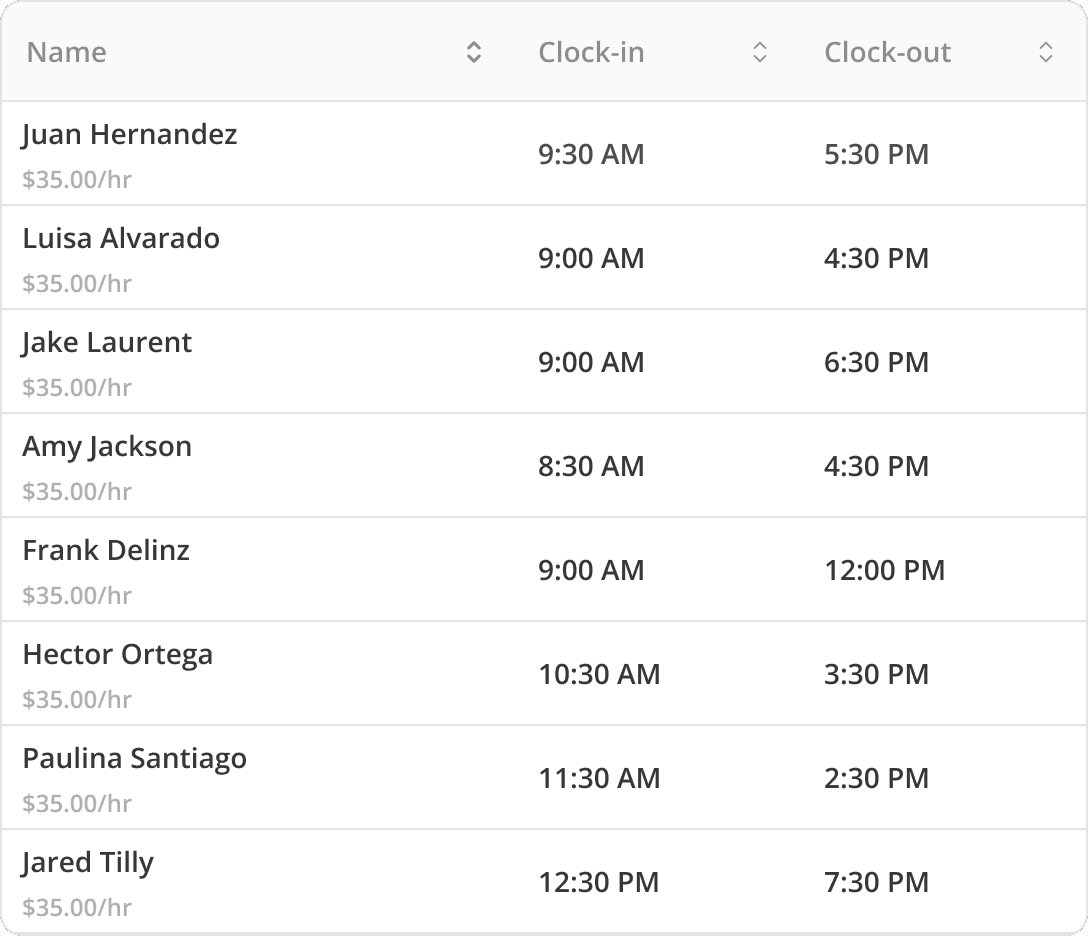 With detailed scheduling reports, get itemized time-tracking and detailed list of workers by project or day. These reports are perfect for accounting.