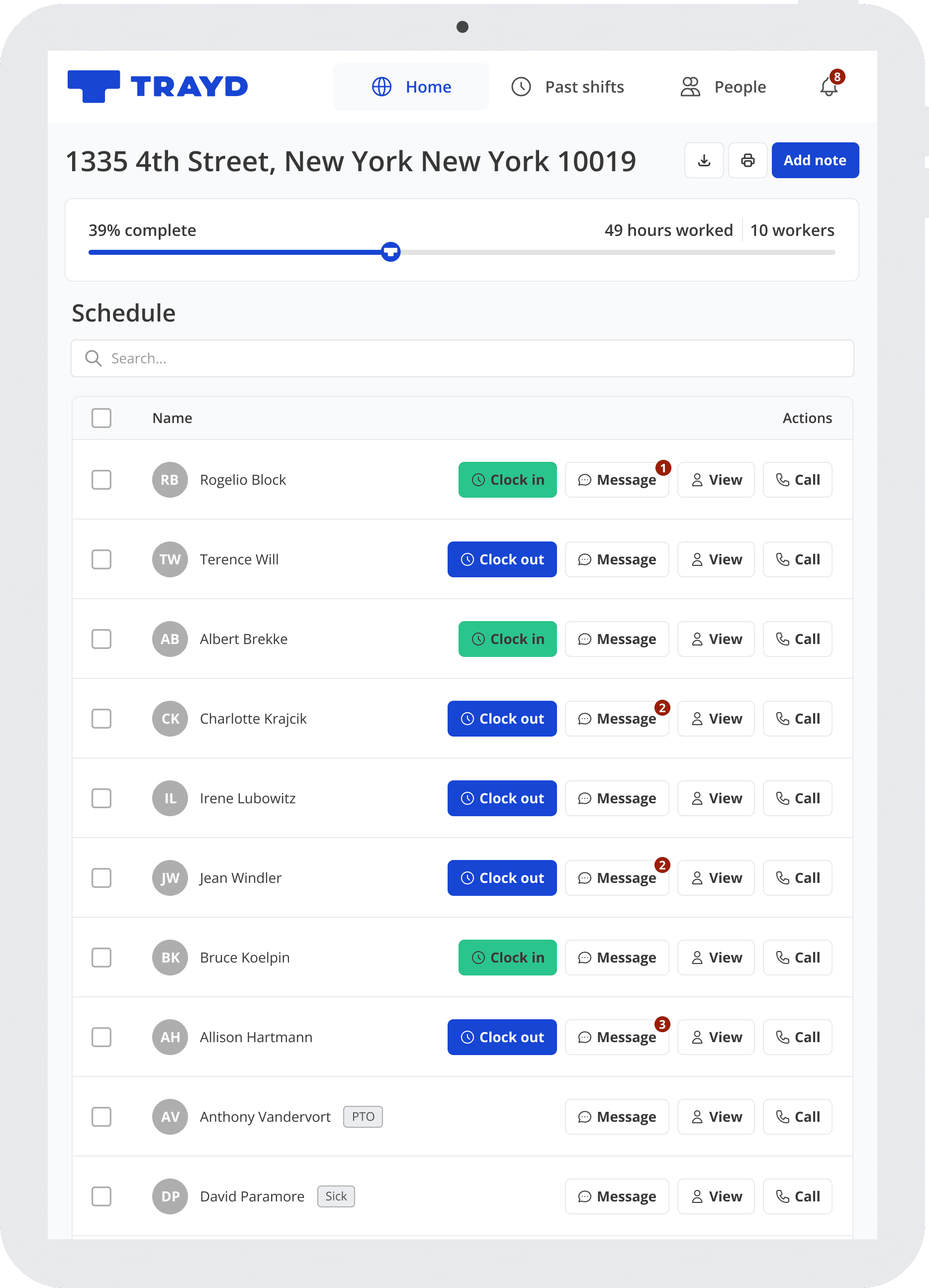 Construction scheduling is hectic and often unpredictable. Trayd's scheduling tools allow back-office teams to create, edit, and manage shifts with ease. Trayd's automated messaging also keeps field workers in the know, with real-time notifications.